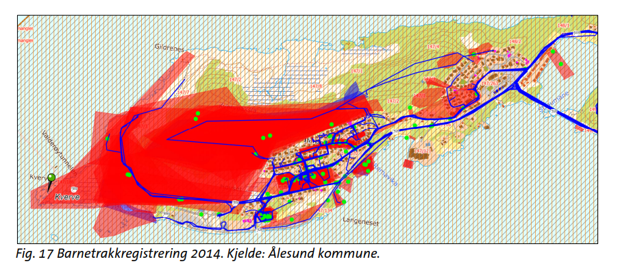 I følge regjeringens kal Hensynet til barn og unge skal ivaretas i planlegging og i kravene til det enkelte byggetiltak. Plan- og bygningsloven skal bidra til å sikre og skape gode oppvekstvilkår for barn og unge. I 2014 hadde skolen sist en aktiv Barnetrakkregistrering og det viste følgende bilde: